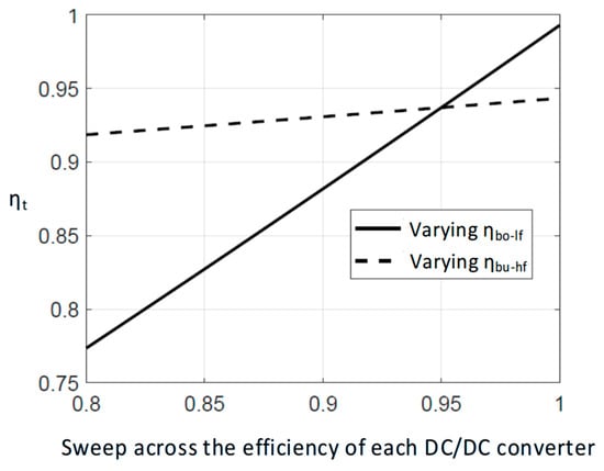 Effect of varying the efficiency of each individual DC/DC converter in ηt.