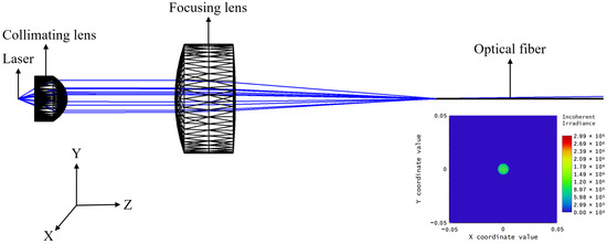 In the coupling method of double lenses and isolators, the collimating lens and focusing lens match the numerical aperture of the laser output and the optical fiber to improve the coupling efficiency. The isolator reduces light reflection from the component end face, preventing nonlinear effects caused by feedback into the laser. This ensures the modulation and spectral characteristics of the laser. As shown in Figure 10, the simulated coupling efficiency exceeds 70%, which represents an increase of 55 percentage points compared to the 15% efficiency achieved by direct coupling. This enhancement significantly improves both the coupling process tolerance and module reliability.