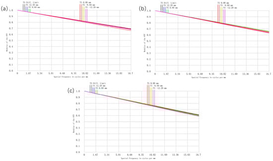 The MTF diagrams of the spectral system: (a) , (b) , and (c) .