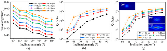 4.2. Influence of Inclination Angle on Optical Mode and Q-Factor