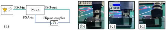 (a) The experiment setup of measure SOP. (b–d) The different stage of clip-on coupler.