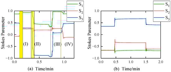 In practice, the stages I–II and III–IV are usually successive. The corresponding Stokes parameter traces are shown in Figure 3b. Based on the above analysis, we can conclude that the SOP is sensitive to the fiber eavesdropping, which confirms the feasibility of detecting fiber eavesdropping with SOP. In addition, SOP can capture action details of abnormal events, aiding in the distinction between fiber optic eavesdropping and other abnormal events. However, if the sampling frequency of SOP is not high, it becomes difficult to distinguish between the start and end of fiber eavesdropping. In this case, additional feature data may be required.