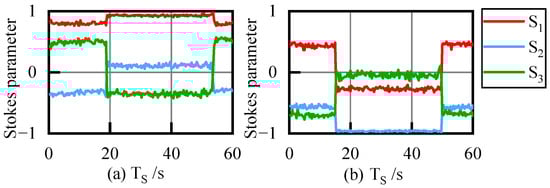 (a) The temporal Stokes parameters traces for the decomposition process of optical eavesdropping. (b) The temporal Stokes parameters traces for the successive process of optical eavesdropping.