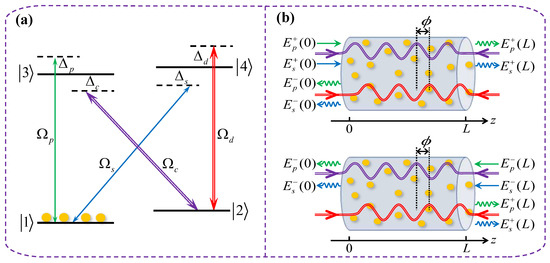 2]. However, implementing FWM in conventional media faces challenges of weak nonlinear responses and significant resonant absorption, typically requiring high-intensity lasers or materials with special symmetries to enhance atom–light interactions. This limitation can be overcome by exploiting the effect of electromagnetically induced transparency (EIT) [