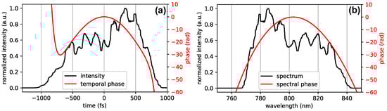 - Geib, N.C.; Zilk, M.; Pertsch, T.; Eilenberger, F. Common pulse retrieval algorithm: A fast and universal method to retrieve ultrashort pulses. Optica 2019, 6, 495–505. [Google Scholar] [CrossRef]