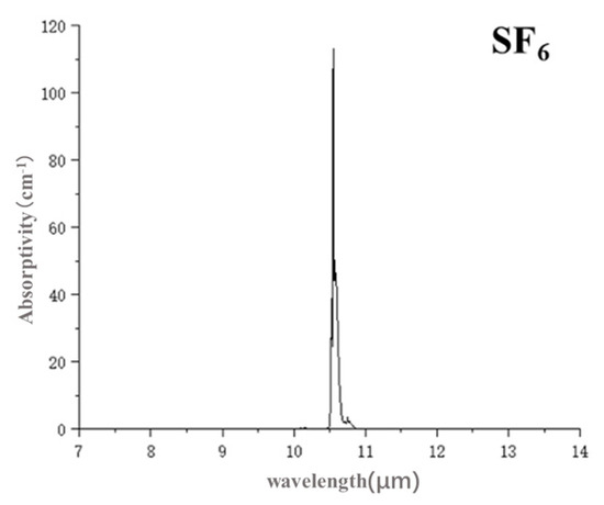 Spectral absorption curve of SF6.