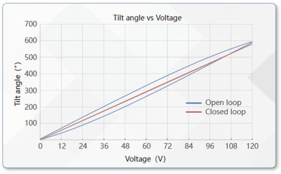 Dependence of the tilt angle on the voltage applied to an actuator.