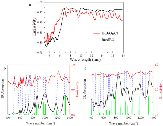 3.2. Synthesis of K3B6O10Cl and BaAlBO4 Powder and Their IR Emission