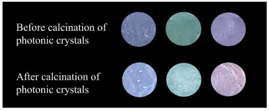 Structural color [1,2,3] and chemical pigment are two sources of color in nature. Compared with traditional chemical pigments, structural color is green, stable, and environmentally friendly, and will not undergo photochemical decomposition. At the same time, the hue and light intensity of structural colors change in response to angular patterns, different light intensities, and structural distances [4]. At present, the application of structural color in textiles [2], cosmetics [5], paints [6], and anti-counterfeiting patterns [7] has been studied, but there is still a challenge regarding multiple application scenarios for structural colors. The unique coloring mechanism of structural color provides conditions for high corrosion resistance, high bleaching, and high biocompatibility of structural color. Therefore, it has great potential to replace traditional chemical pigments in the fields of medical treatment, textiles [2,8,9,10,11], and high-efficiency filters.