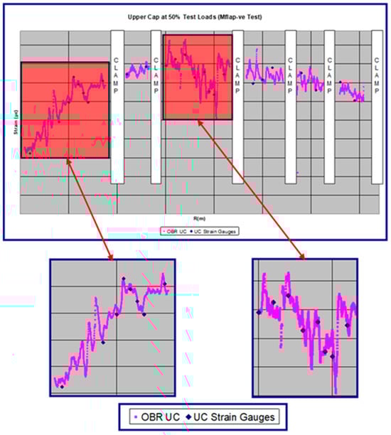 Optical fiber Bragg gratings function as point sensors that are typically 1–10 mm in length, measuring strain along the fiber’s longitudinal direction, and can be easily multiplexed. Their performance is similar to that of conventional electrical strain gauges (ESGs). However, strain gradients along the grating and transverse stresses can distort the reflected optical peak [4]. This phenomenon must be carefully understood, particularly when FBGs are embedded in composite laminates. Although FBG technology has been available since the early 1990s, it is now regarded as mature (TRL 8), with the remaining challenges being certification and regulatory acceptance. Additionally, compact and rugged interrogation systems are currently available for in-flight measurements.