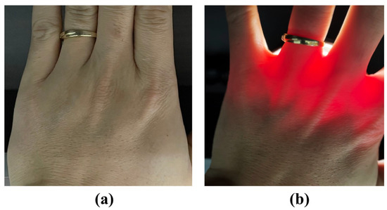 Near-infrared (NIR) phosphors have high potential in various biological applications due to their unique optical properties. A notable biological application of NIR phosphors is in non-invasive techniques. NIR light penetrates deeper into biological tissues, which can provide clear imaging information in vivo. As a demonstration of this potential application, Figure 10 shows photos of a human hand taken without and with light from an LED encapsulated with NIR phosphor. Figure 10b shows that the NIR radiation enables deep penetration and provides a clear image, which could help to detect the presence of foreign objects.