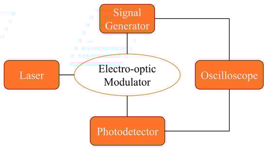 Based on the wave equation and optical power correlation, the phase shift per unit propagation length exhibits a linear dependence on the output optical power under small-signal conditions. The output optical power demonstrates direct proportionality to the voltage detected by the PD. Consequently, the normalized optical power response of the modulator, termed the electro-optic (EO) response, can be expressed as follows [15,16]: