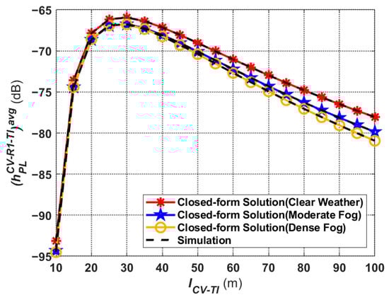 Finally, based on Equations (24) and (25), a closed-form expression for the average path loss of the CV– link corresponding to can be obtained as: