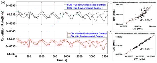 (a) Comparison of bidirectional repetitive rate fluctuations without and under environmental control; (b) bidirectional correlation without environmental control; and (c) bidirectional correlation under environmental control.