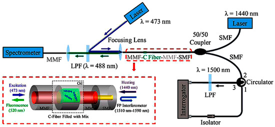 Schematic diagram of the all-optical fiber qPCR system based on the C-type optical fiber microcavity [36].