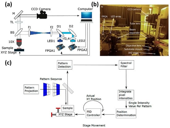 - Stonehouse, M.; Blanchard, A.; Guilhabert, B.; Zhang, Y.; Gu, E.; Watson, I.; Herrnsdorf, J.; Dawson, M. Automated alignment in mask-free photolithography enabled by micro-LED arrays. Electronics Letters. 2021, 57, 721–723. [Google Scholar] [CrossRef]