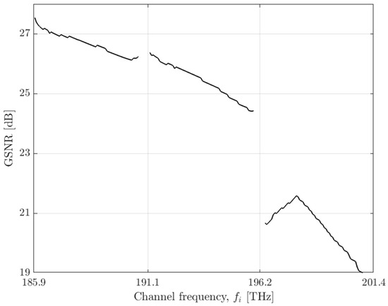 GSNR as a function of the channel frequency.