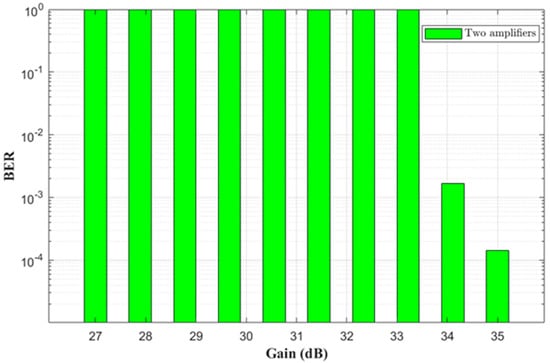 BER versus overall gain of optical amplifiers.