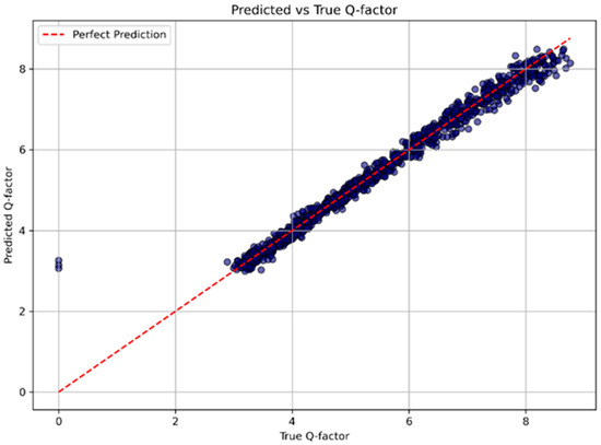 Predicted versus true Q-factor values using the Wide ResNet model.