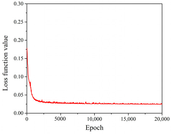 In our study, we opted for a resolution of 512 × 512 pixels. Figure 4 illustrates the variation in the loss function value of the GS-CNN after 20,000 training epochs. As evident from Figure 4, the loss function value tends to stabilize and reaches a near-minimal level after 10,000 training epochs. Consequently, we opted to set the number of training epochs at 10,000.