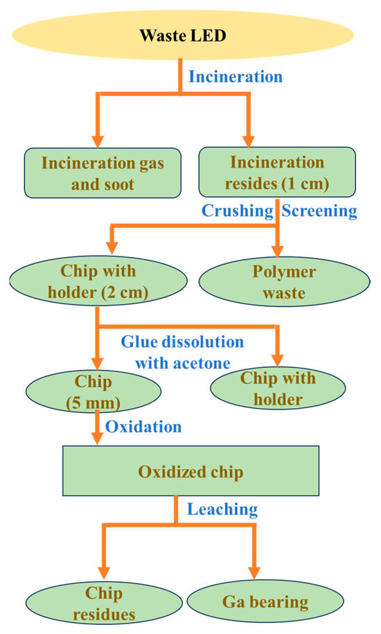 - Maarefvand, M.; Sheibani, S.; Rashchi, F. Recovery of gallium from waste LEDs by oxidation and subsequent leaching. Hydrometallurgy 2020, 191, 105230. [Google Scholar] [CrossRef]