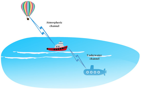 Figure 1. Cross-medium hybrid two-hop wireless optical communication model.