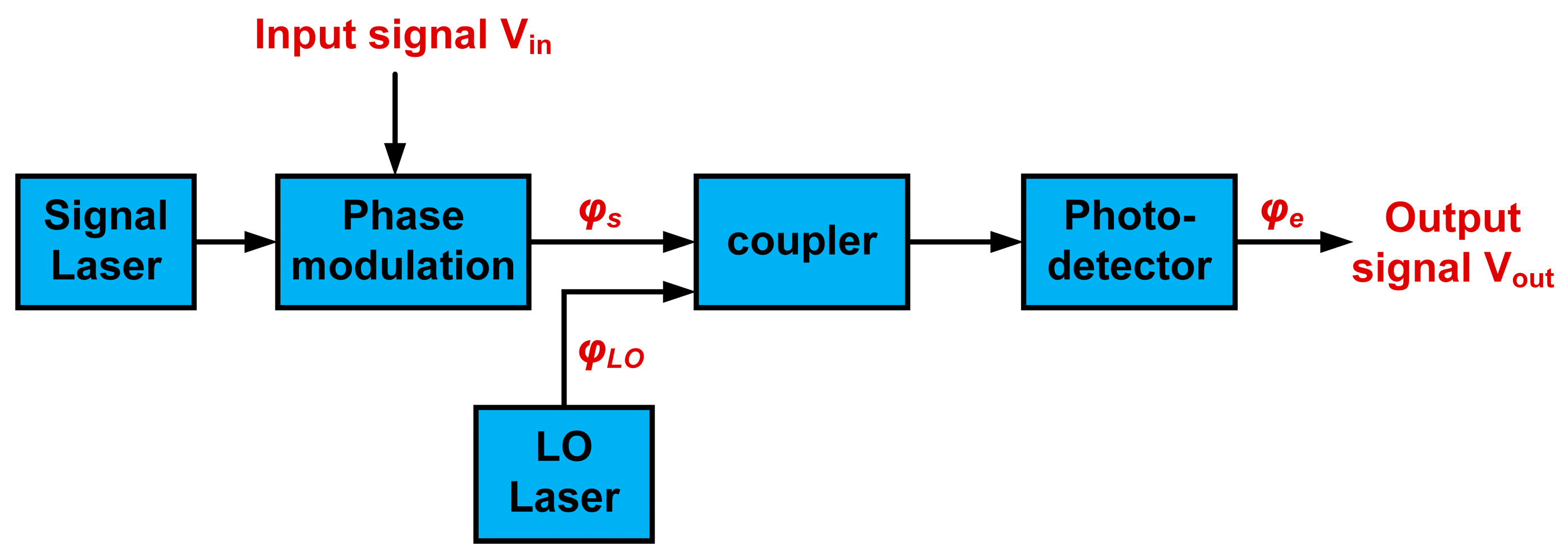 - Betts, G.E.; Krzewick, W.; Wu, S.; Yu, P.K.L. Experimental Demonstration of Linear Phase Detection. IEEE Photon. Technol. Lett. 2007, 19, 993–995. [Google Scholar] [CrossRef]