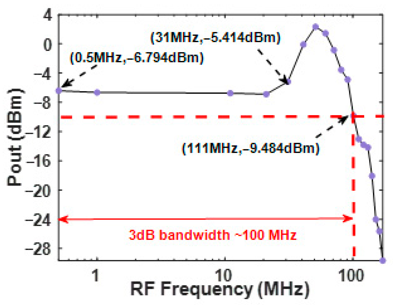 - Wang, R.; Bhardwaj, A.S.; Li, Y. Highly linear InP phase modulator for high dynamic range RF/photonic links. In Proceedings of the 2010 IEEE MTT-S International Microwave Symposium, Anaheim, CA, USA, 23–28 May 2010; pp. 732–735. [Google Scholar]