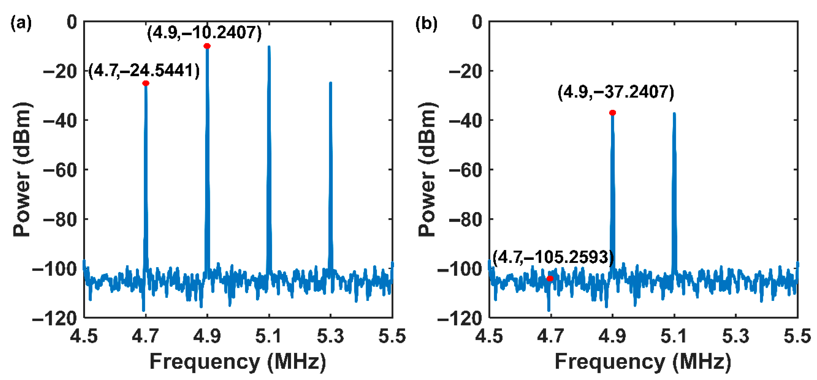 - Li, J.; Zhang, Y.C.; Yu, S.; Gu, W. Optical sideband processing approach for highly linear phase-modulation/direct-detection microwave photonics link. IEEE Photon. J. 2014, 6, 1–10. [Google Scholar] [CrossRef]