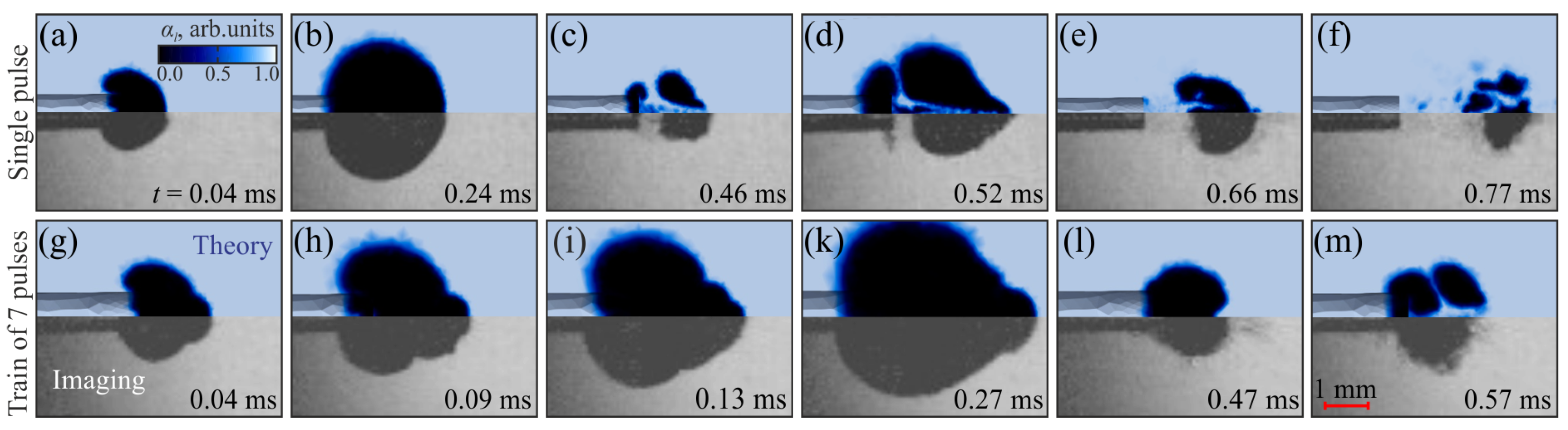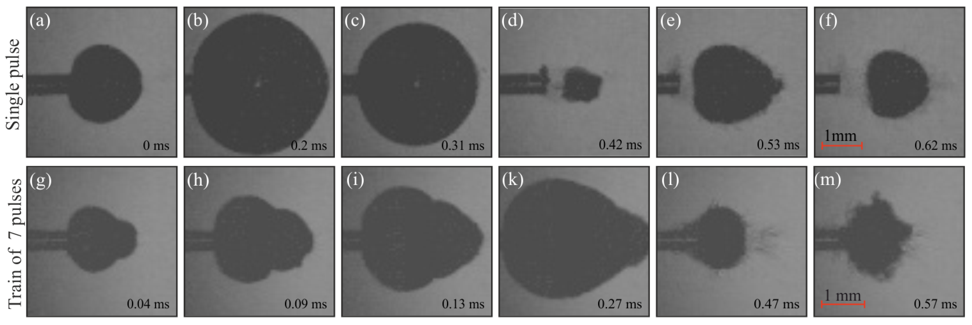 - Zhao, X.; Ma, W.; Chen, J.; Xiang, G.; Zhong, P.; Wang, K. Vapour bubbles produced by long-pulsed laser: A race between advection and phase transition. J. Fluid Mech. 2024, 999, A103. [Google Scholar] [CrossRef]
