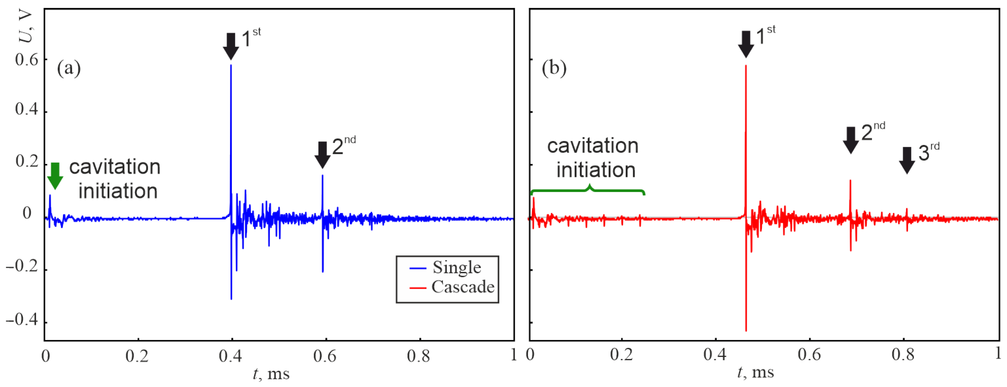- Luo, J.; Niu, Z. Jet and Shock Wave from Collapse of Two Cavitation Bubbles. Sci. Rep. 2019, 9, 1352. [Google Scholar] [CrossRef]