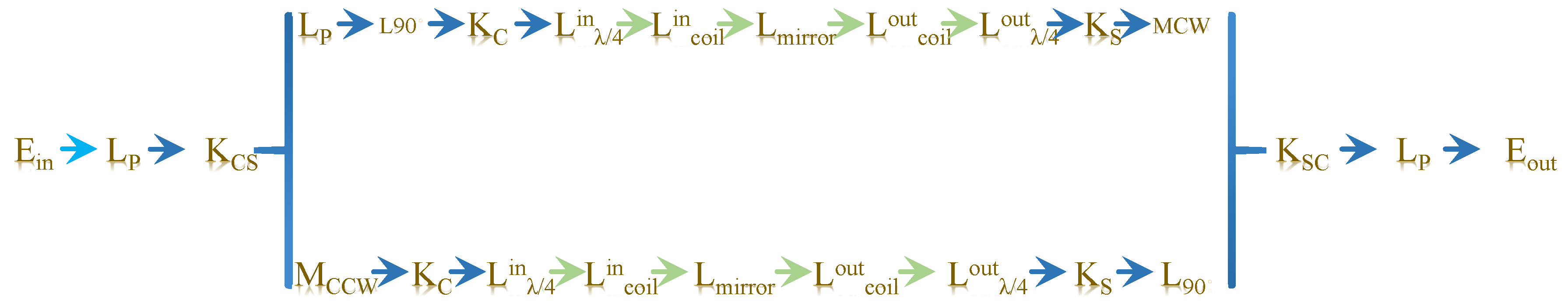 - Liu, Y.; Song, H. Theoretical analysis on polarization characteristics of spun birefringent optical fiber based on an analytical Jones matrix model. Optik 2021, 228, 166179. [Google Scholar] [CrossRef]