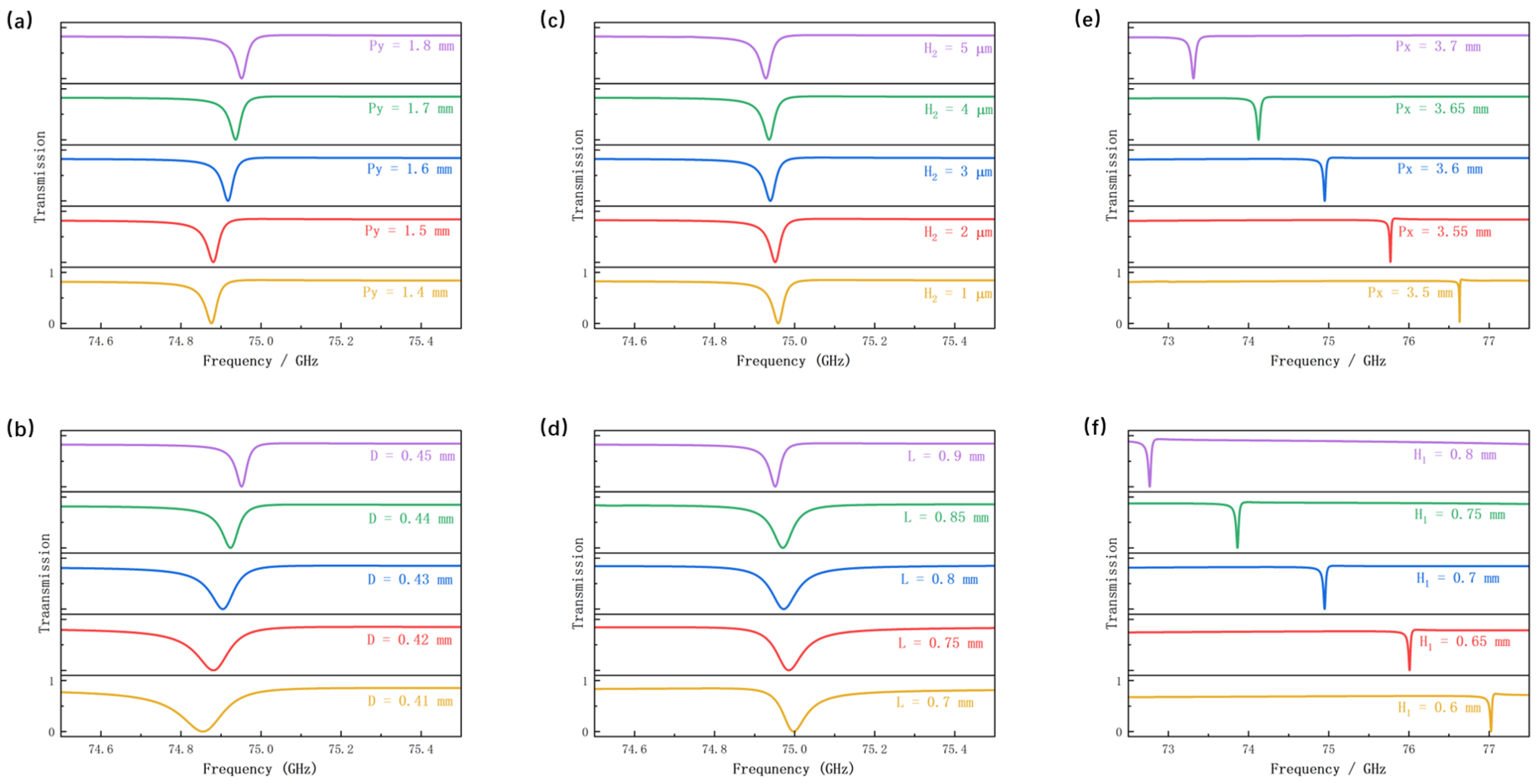 was conducted. The scanning range was set from −0.2 mm to 0.2 mm with a step size of 0.02 mm, yielding 21 transmission spectra corresponding to different values of