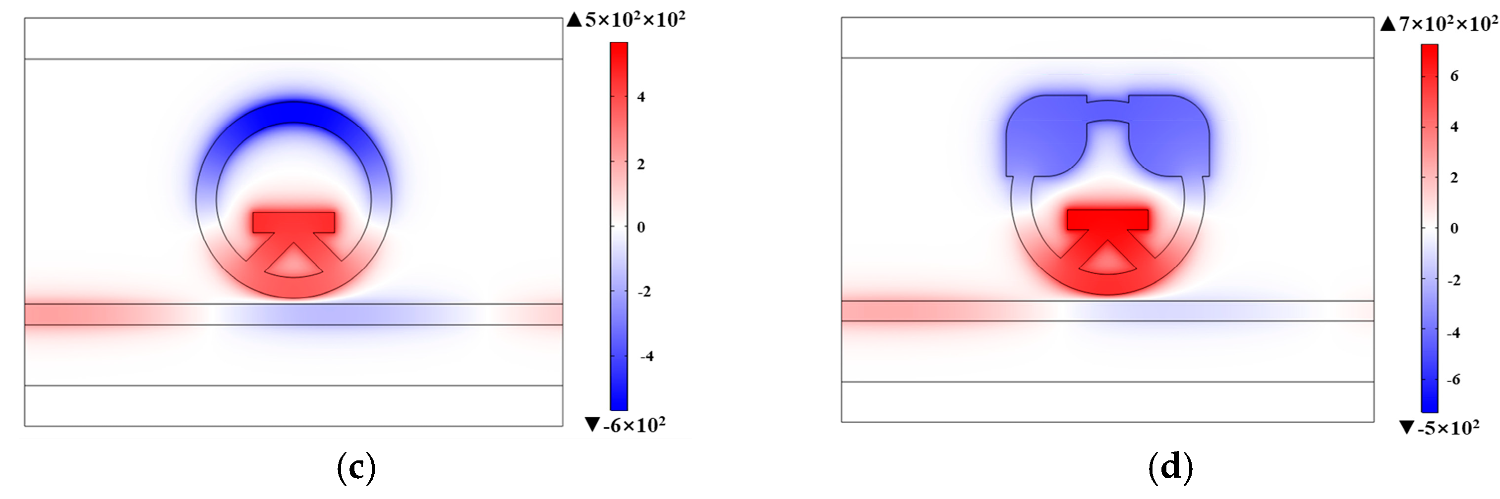 - Wang, W.; Zhang, S.; Cao, H. Fano Resonant Sensing in MIM Waveguide Structures Based on Multiple Circular Split-Ring Resonant Cavities. Micromachines 2025, 16, 183. [Google Scholar] [CrossRef]