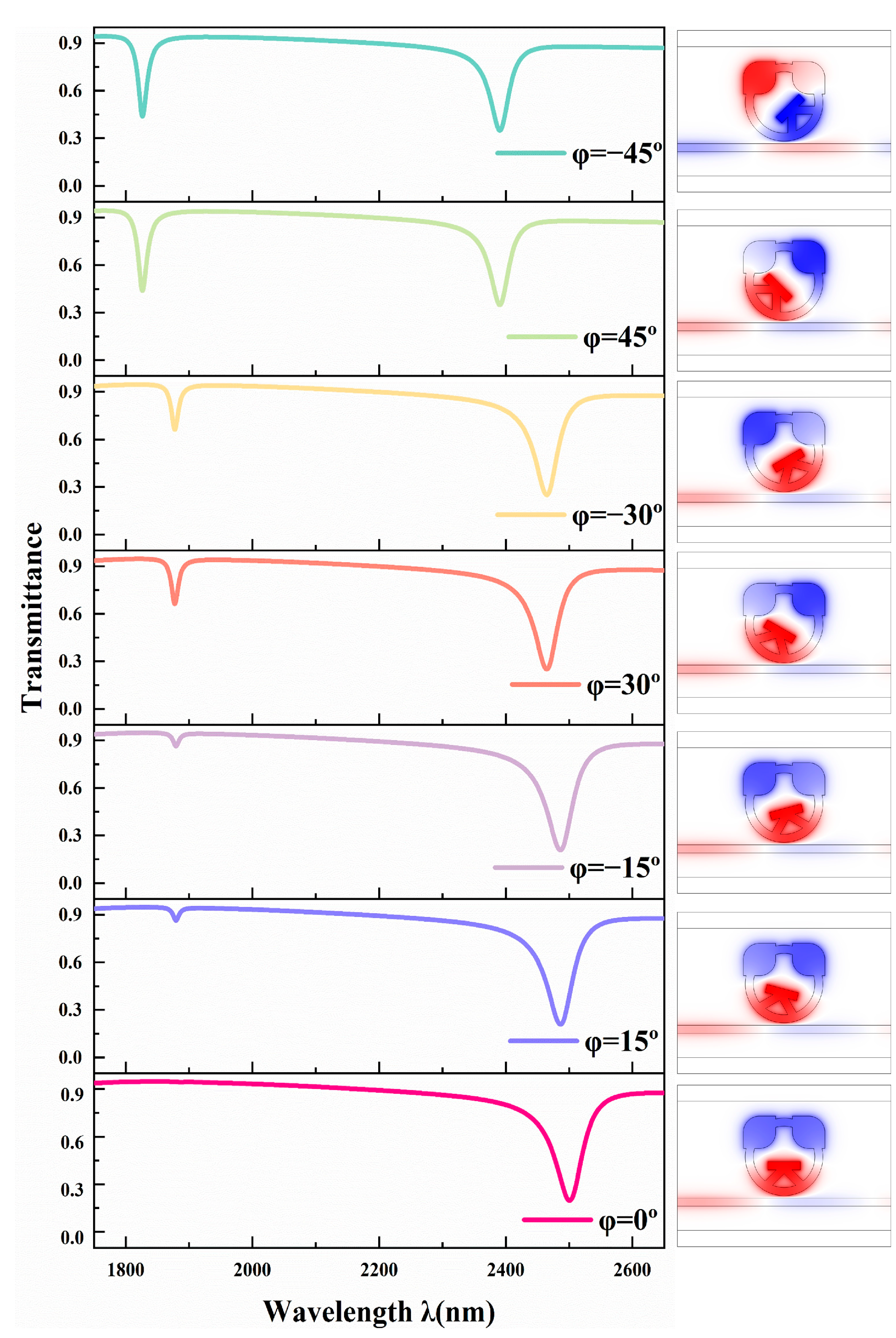 In MIM waveguide systems, the key to effectively exciting and controlling Fano resonance lies in the geometric design of the resonator. In recent years, by introducing diverse resonator geometries, device performance has been continuously improved. For example, Zhu and Jin reported an elliptical split-ring resonator integrated with SiO