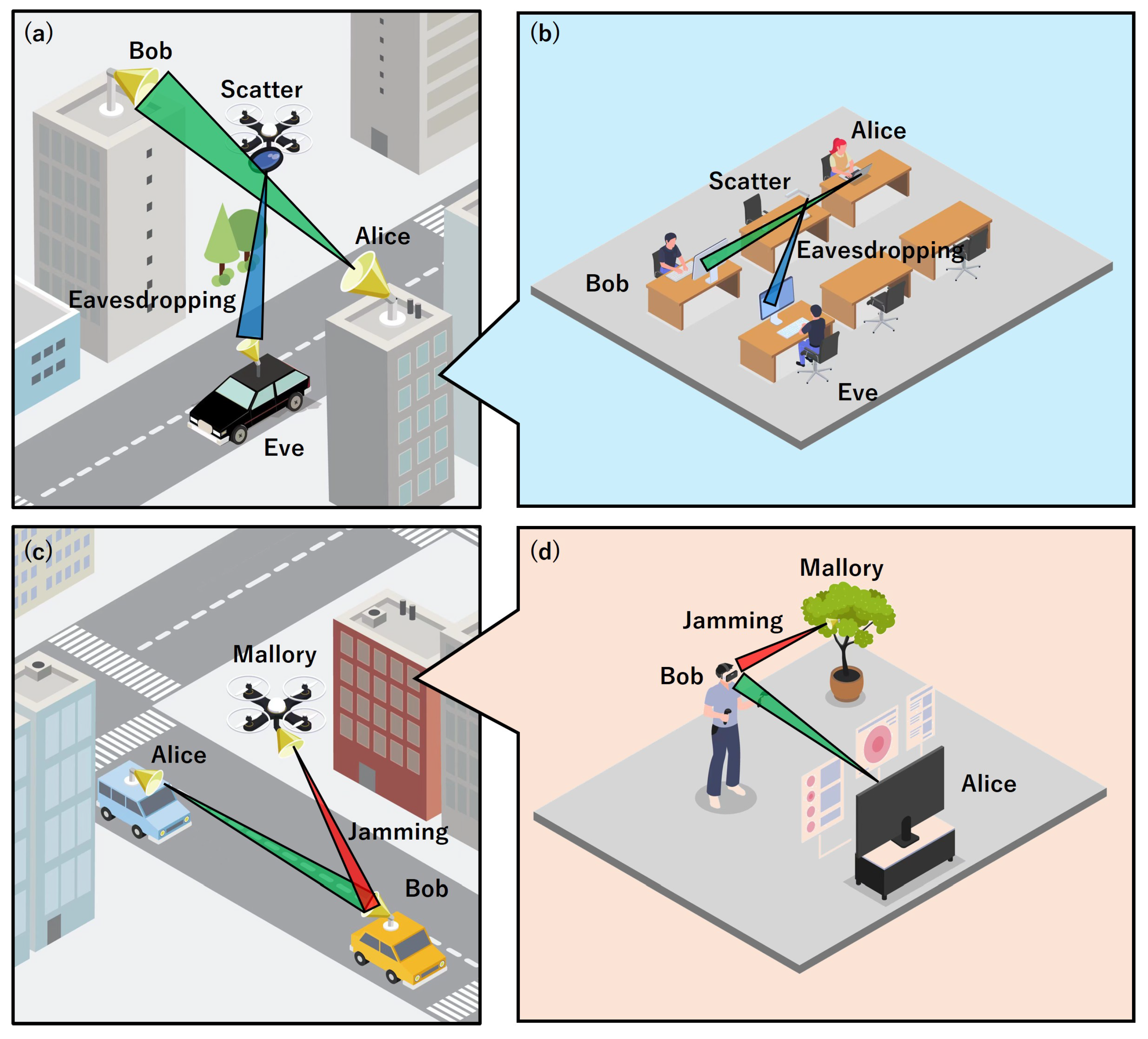 - Li, P.; Liu, W.; Zhao, J.; Cui, J.; Ge, Y.; Niu, Q.; Yang, Y.; Meng, X.; Sun, H.; Ma, J. Eavesdropping risk in terahertz channels by coverings on wavy surfaces. Opt. Express 2025, 33, 48451–48465. [Google Scholar] [CrossRef] [PubMed]