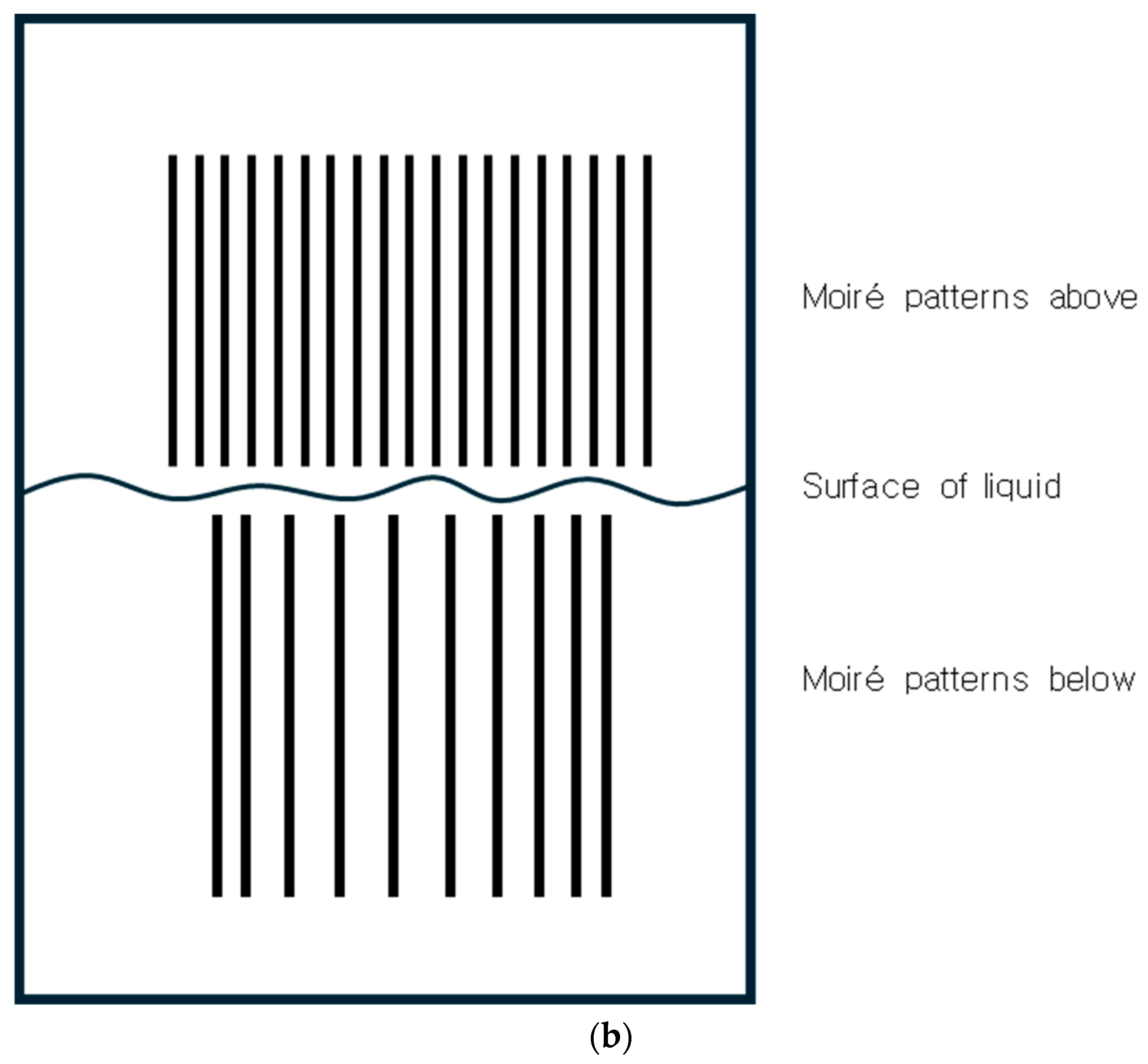 - Nishijima, Y.; Oster, G. Moiré patterns: Their application to refractive index and refractive index gradient measurements. J. Opt. Soc. Am. 1964, 54, 1–5. [Google Scholar] [CrossRef]