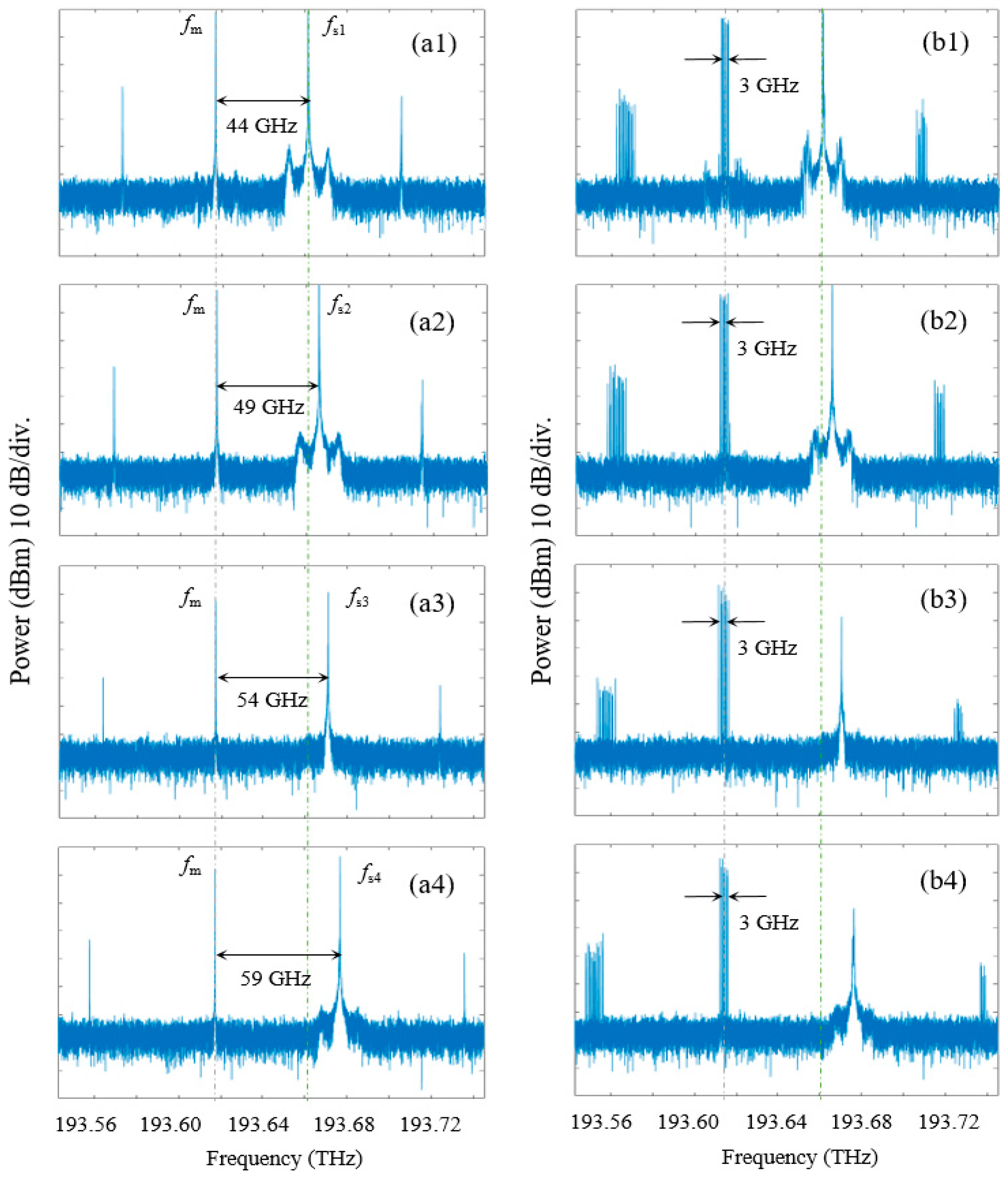 - Xiao, Z.Z.; Wu, Z.M.; Xia, G.Q. Broadband dual-chirp FMCW laser source based on DSB-SC modulation and cascaded FWM. Opt. Exp. 2023, 31, 29925–29933. [Google Scholar] [CrossRef]