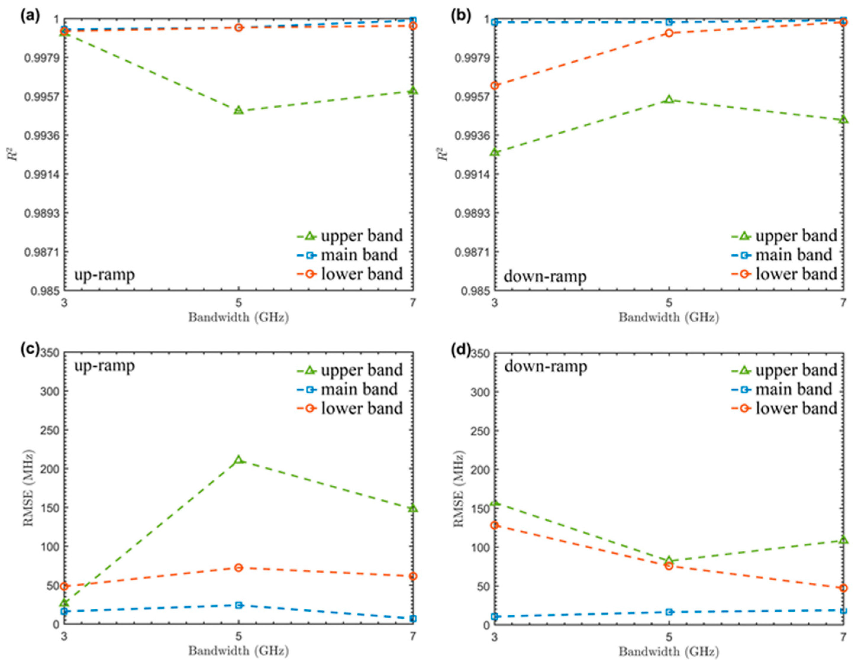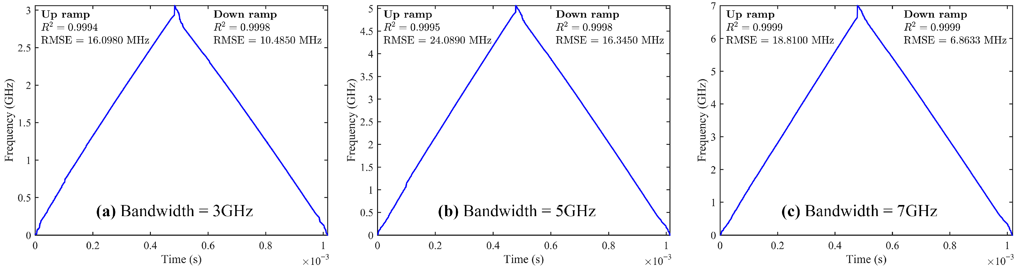 - Zuo, G.M.; Xie, Q.J.; Na, Q.X.; Zhu, X.Q.; Liu, H.B.; Zhao, F.; Xu, Y.B.; Zhuang, D.W.; Zhang, H.; Wang, L.; et al. Fourier domain-based iterative predistortion method for high-repetition-rate optical linear frequency sweep. Measurement 2025, 244, 116583. [Google Scholar] [CrossRef]