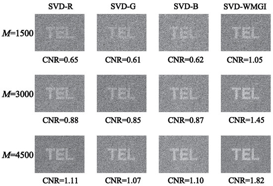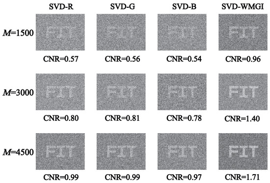 - Chen, L.; Wang, C.; Xiao, X.; Ren, C.; Zhang, D.; Li, Z.; Cao, D. Denoising in SVD-based ghost imaging. Opt. Express 2022, 30, 6248–6257. [Google Scholar] [CrossRef] [PubMed]