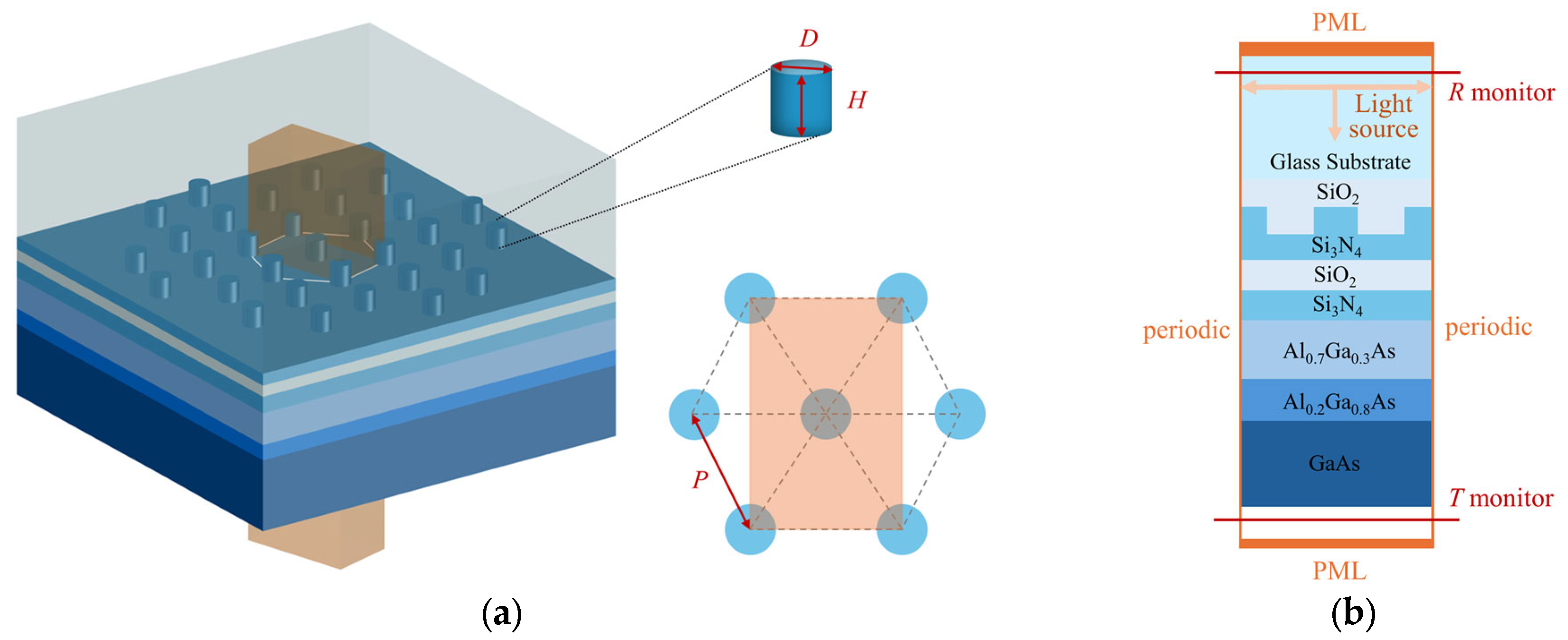 3.1. Optimization of Nanopillar Array Structure
