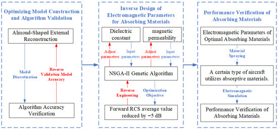 P-band radars are predominantly employed for long-range early warning. During missions, the forward sector of an aircraft encounters the most direct and severe detection threats, which determine the platform’s survivability. Therefore, we prioritize forward RCS reduction as the principal stealth metric, assigning it a higher weighting coefficient in the objective function. Figure 3 shows the flowchart for the inverse design of electromagnetic parameters for absorptive materials.
