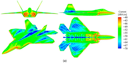 3.3. Surface Current of a Certain Aircraft Before and After Applying Absorbing Materials