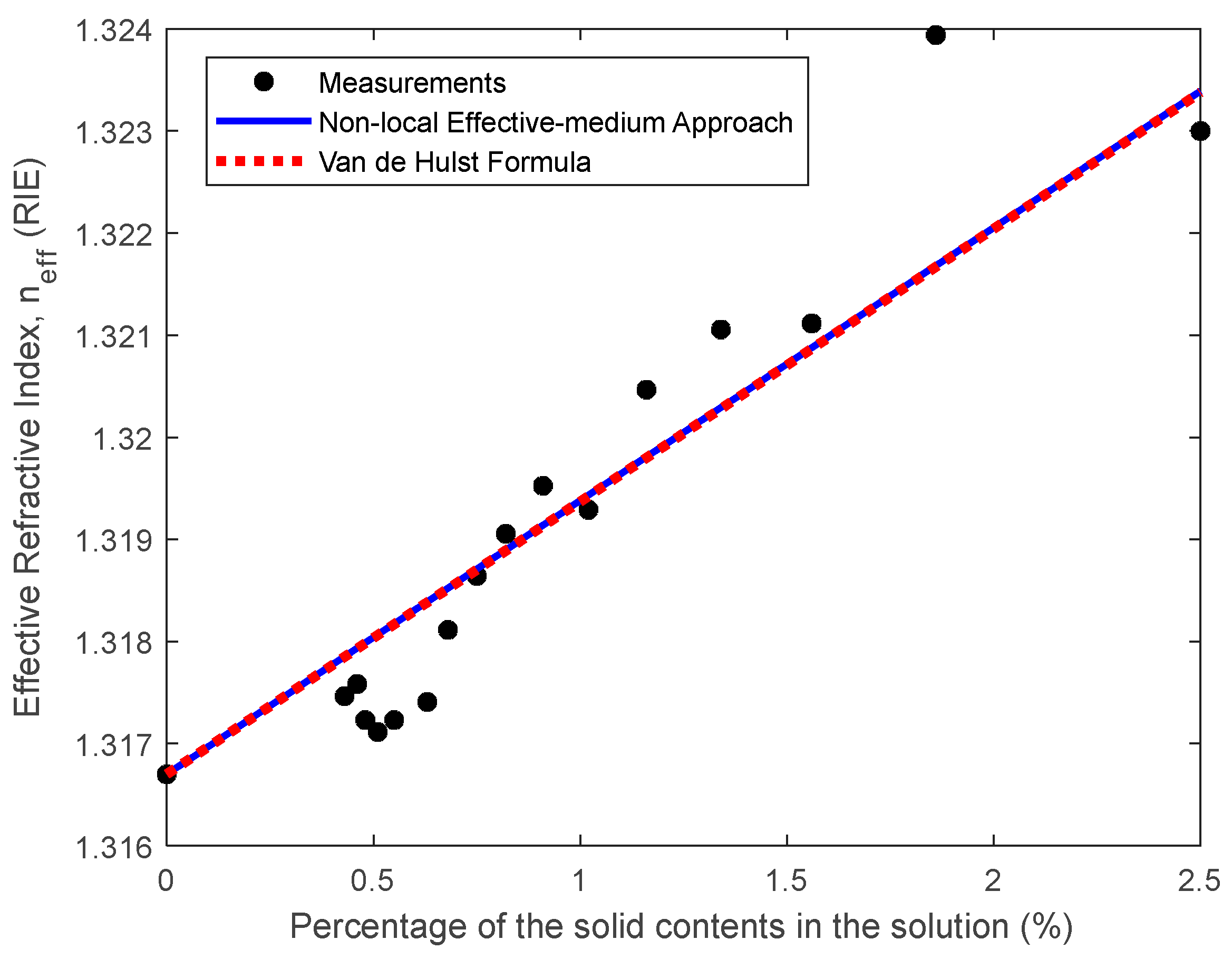 - García-Valenzuela, A.; Barrera, R.G.; Gutiérrez-Reyes, E. The effective refractive index of turbid colloidal suspensions. Opt. Express 2008, 16, 19741–19746. [Google Scholar] [CrossRef] [PubMed]