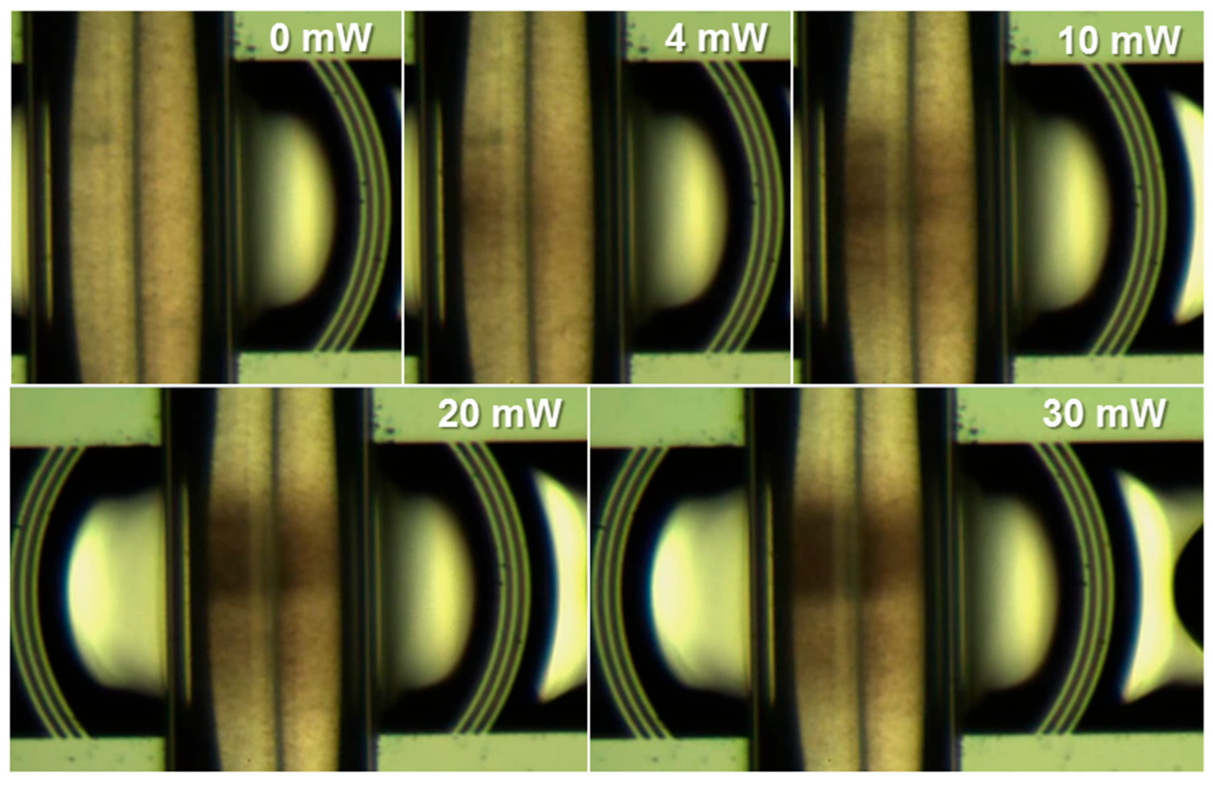 - Shao, H.; Wang, W.; Lana, S.; Lear, K. High-Q tunable photonic crystal microcavity with integrated liquid-crystal infiltration and heater for high-sensitivity refractive index sensing. IEEE Photonics Technol. Lett. 2008, 20, 493–495. [Google Scholar] [CrossRef]