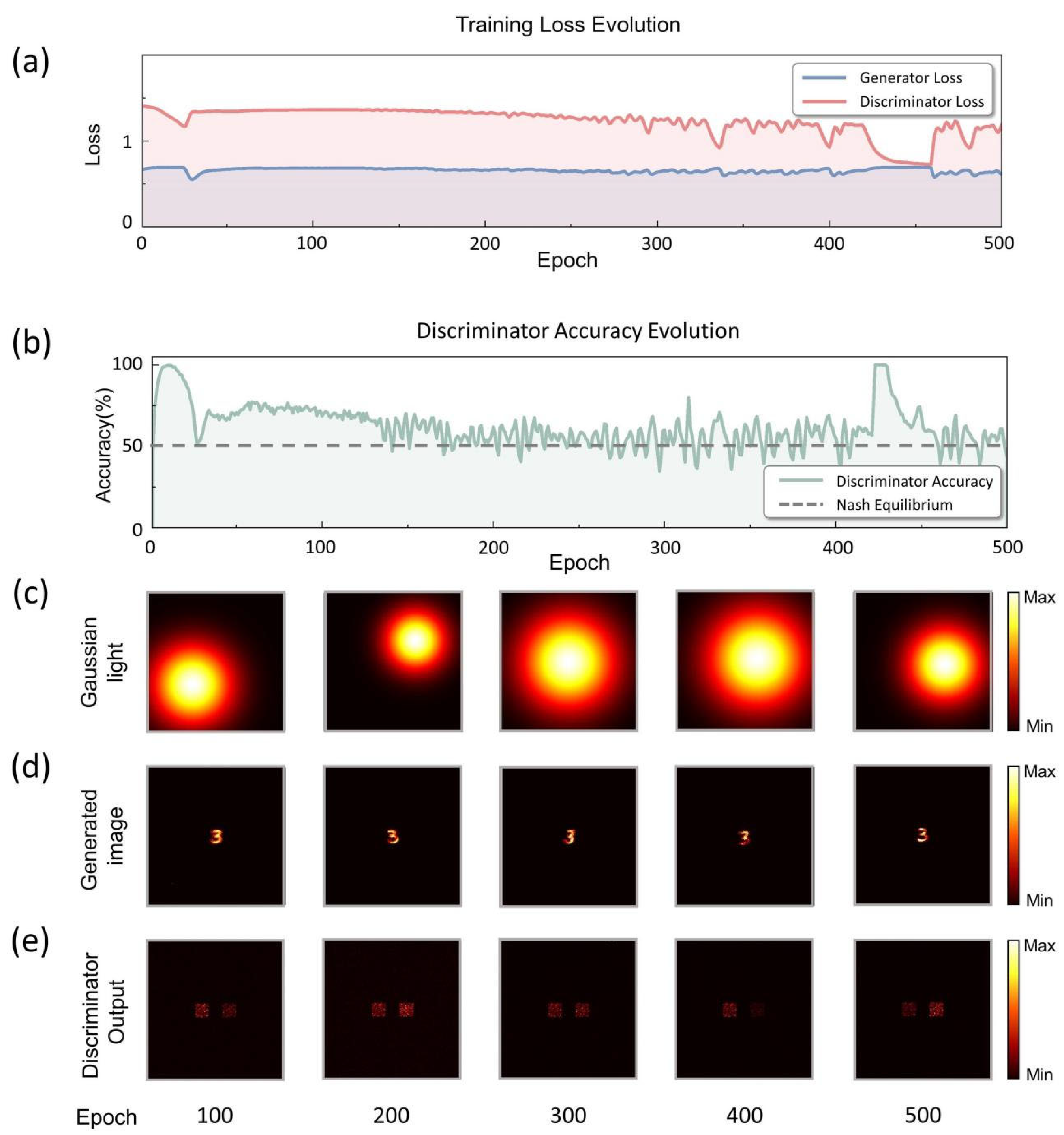 Chicago/Turabian StyleHu, Pei, Tengyu Cui, Yuanyuan Zhang, and Shuai Feng. 2026. "Generative Adversarial Optical Networks Using Diffractive Layers for Digit and Action Generation" Photonics 13, no. 1: 94. https://doi.org/10.3390/photonics13010094
