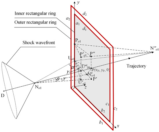 - A time-equivalent model, minimum-time SW path, converts spatial SW propagation into the apparent shock-wave velocity (ASWV) propagation time within the measurement plane by decomposing the path into the FO’s travel time to the interception point (IP) and the ASWV propagation from the IP to a given LOM. Due to the deterministic FO trajectory, the temporal reference shifts to the instant the object reaches the measurement plane, enabling this transformation.