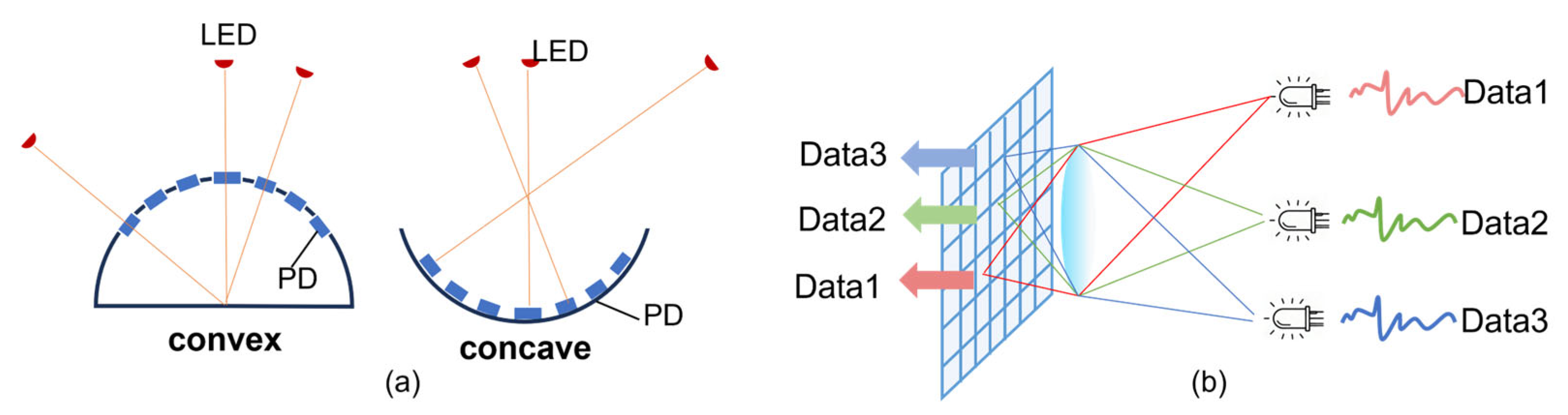 - Bera, K.; Karmakar, N. Interference Mitigation in VLC Systems Using a Variable Focus Liquid Lens. Photonics 2024, 11, 506. [Google Scholar] [CrossRef]