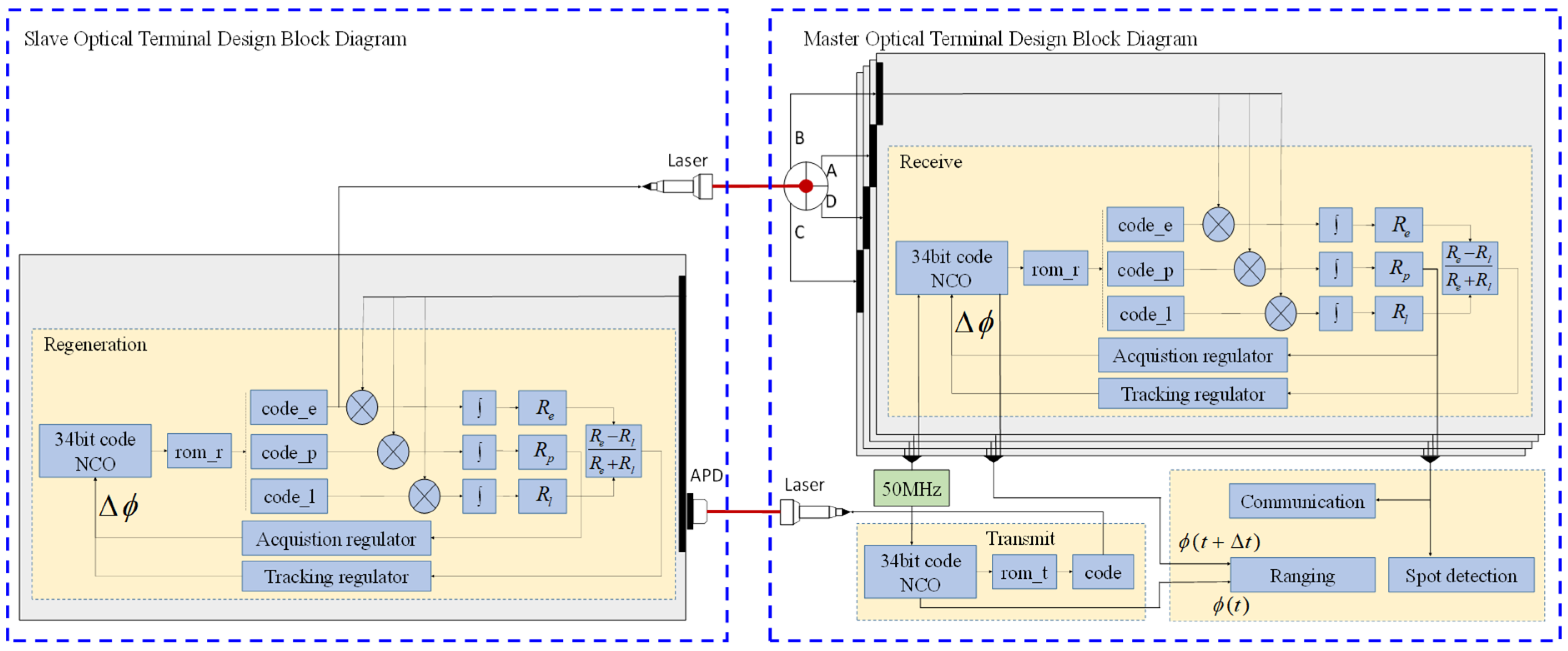 - Weng, R.; Zhang, M.; Fan, G.; Jiao, W.; Lin, P.; Zhang, Z.; Zeng, D.; Yu, X. Research on a CDMA-Based Integrated Single-Terminal Detection System for Laser Communication Networking with Micrometer-Level Disturbance Error. Opt. Commun. 2025, 586, 131928. [Google Scholar] [CrossRef]