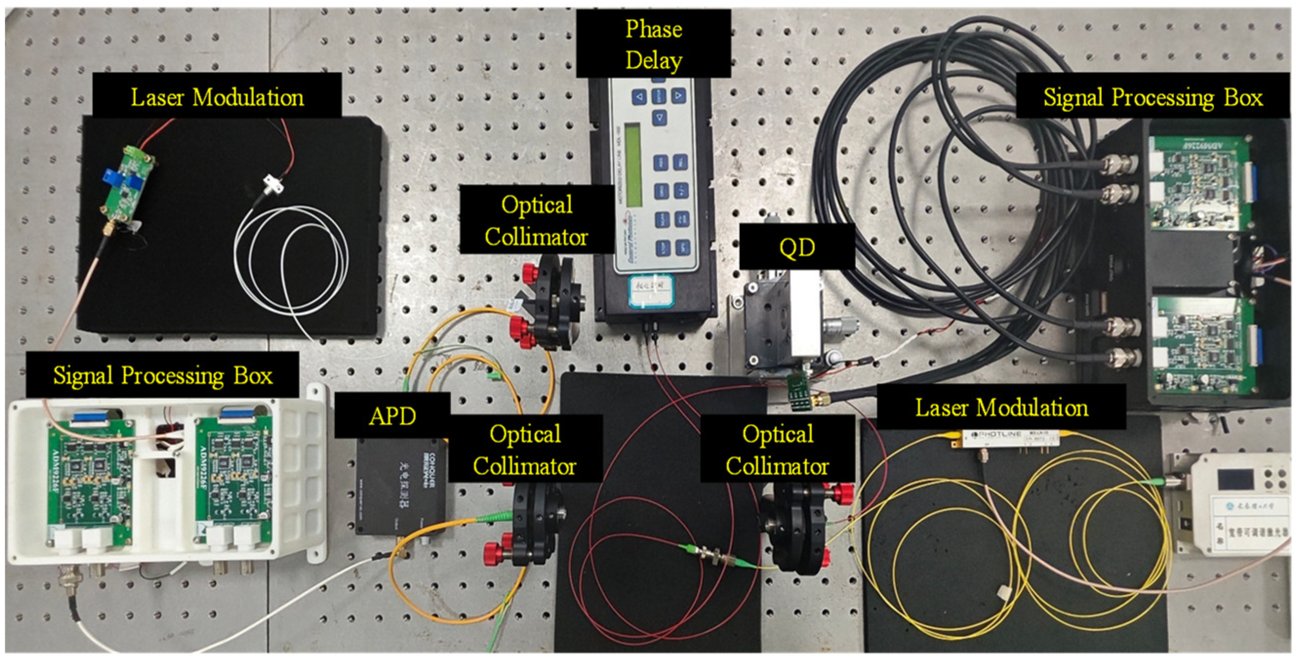 - Chen, S.; Yu, X.; Ye, J.; Lin, P.; Zhang, Z.; Wang, T.; Xu, L. High-Precision Position Detection and Communication Fusion Technology Using Beacon Spread-Spectrum Modulation with Four-Quadrant Detector. Appl. Sci. 2024, 14, 3362. [Google Scholar] [CrossRef]